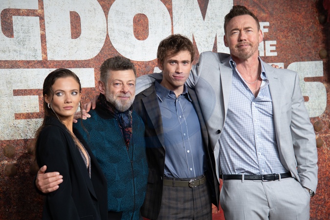 (L-R) - Freya Allan, Andy Serkis, Owen Teague, Kevin Durand attends a Preview of 'Kingdom of the Planet of the Apes' at BFI IMAX, London, England, UK on Thursday 25 April, 2024., Credit:Justin Ng / Avalon
