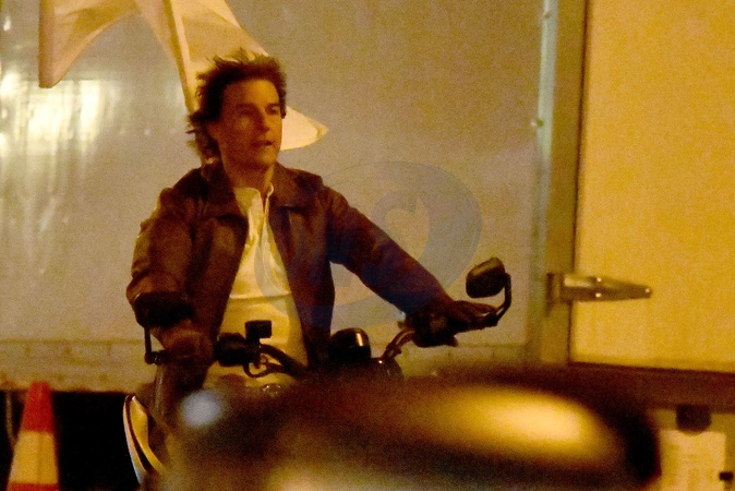 Exclusif - Prix Spécial - No Web - Tom Cruise tourne une scène en moto pour le film "Mission : Impossible 8" dans les rues de Paris