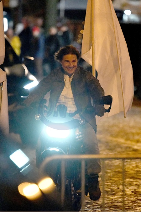 Tom Cruise kręci na ulicach Paryża scenę na motocyklu do filmu „Mission: Impossible 8”