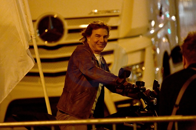 Exclusif - Prix Spécial - No Web - Tom Cruise tourne une scène en moto pour le film "Mission : Impossible 8" dans les rues de Paris
