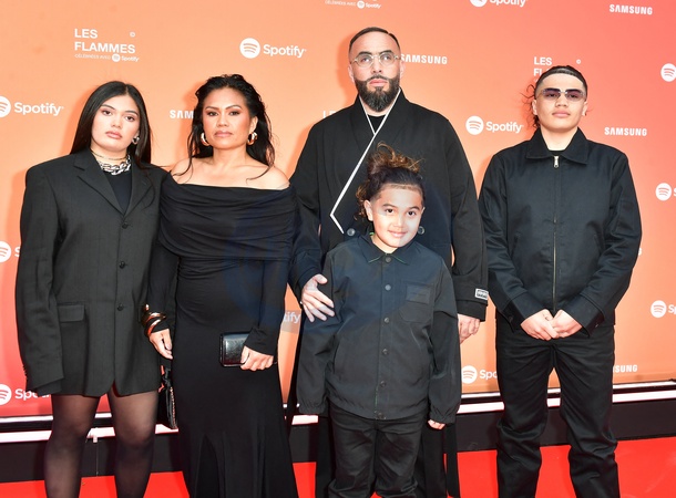 Médine et sa famille - Photocall de la 2ème édition de la cérémonie des Flammes, victoires du rap et de ses courants, au théâtre du Châtelet à Paris, France, le 25 avril 2024. © Veeren/Bestimage