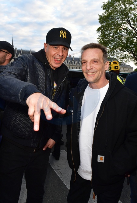 Cut killer et Mathieu Kassovitz - Photocall de la 2ème édition de la cérémonie des Flammes, victoires du rap et de ses courants, au théâtre du Châtelet à Paris, France, le 25 avril 2024. © Veeren/Bestimage