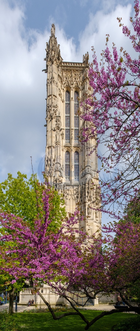 Tour St-Jaques. Remains of late Gothic church, St Jaques la Boucherie.Once used by Blaise Pascal for barometrical experiments.Paris. France. EU. 25 April 2024., Credit:Mark Fairhurst / Avalon