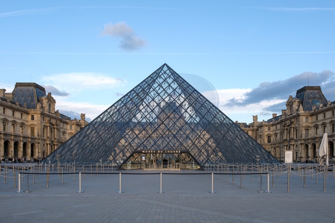 Glass pyramid in the Louvre museum.Paris. France. EU. 25 April 2024., Credit:Mark Fairhurst / Avalon