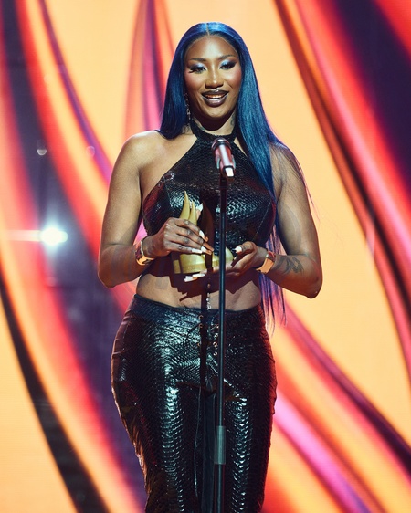 Aya Nakamura remporte trois récompenses (artiste féminine de l'année, Flamme du rayonnement international et Album pop de l'année) - 2ème édition de la cérémonie des Flammes au Théâtre du Châtelet à Paris le 25 avril 2024. © Les Flammes via Bestimage