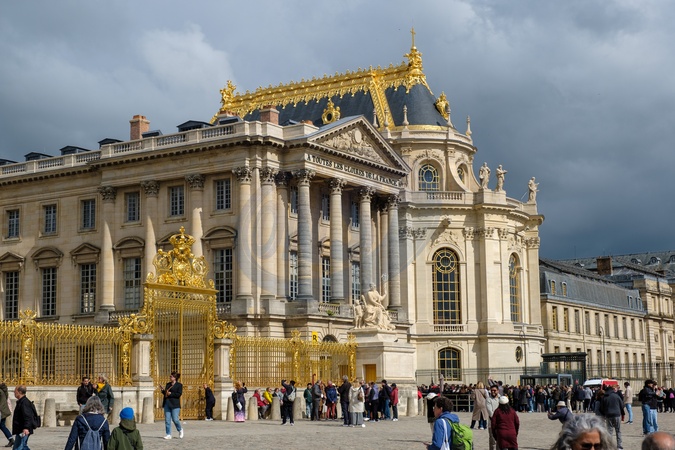 Entrance to Palace of Versailles / Château de Versailles.Versailles. Paris. France. EU. 25 April 2024., Credit:Mark Fairhurst / Avalon