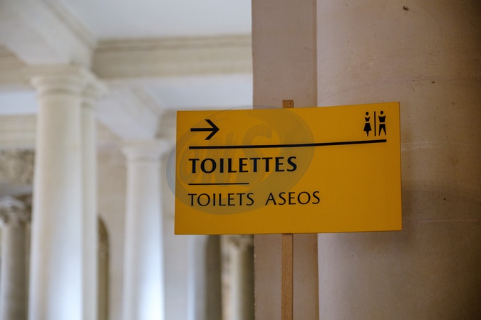 Toilet sign within Palace of Versailles / Château de Versailles.Versailles. Paris. France. EU. 25 April 2024., Credit:Mark Fairhurst / Avalon