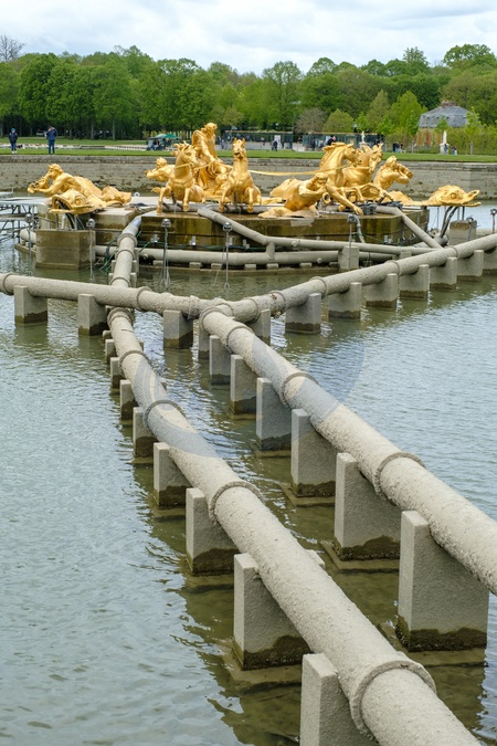 Gardens and fountains of the Palace of Versailles / Château de Versailles.Exposed pipes show how the fountains are supplied with water.Versailles. Paris. France. EU. 25 April 2024., Credit:Mark Fairhurst / Avalon