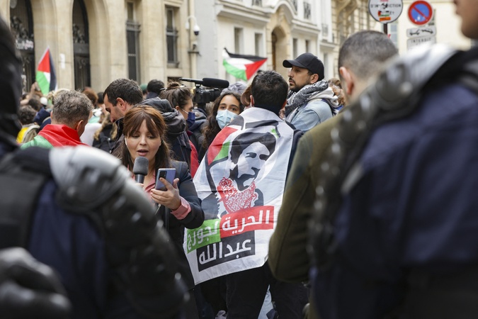 Illustrations de l'occupation de l'établissement Sciences Po à Paris par des étudiants pro-palestiniens