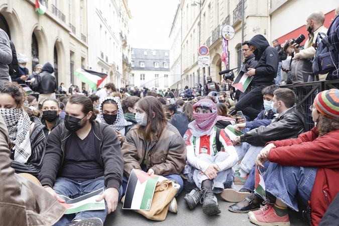 Illustrations de l'occupation de l'établissement Sciences Po à Paris par des étudiants pro-palestiniens