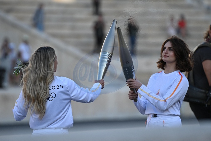 Przeniesienie płomienia olimpijskiego z Grecji do Francji na Stadionie Panathenaickim w Atenach