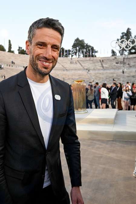 Tony Estanguet, président de Paris 2024 - Passation de la flamme olympique de la Grèce à la France austade panathénaïque d'Athènes, Grèce, le 26 avril 2024. © Nikos Zagas/Bestimage Passing of the Olympic flame from Greece to France at the Panathenaic Stadium in Athens, Greece, on April 26, 2024.