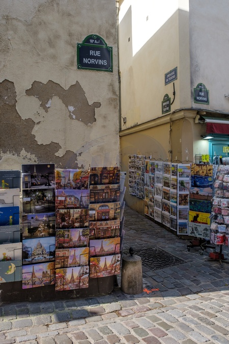 Souvenirs and cards outside shops in Montmartre near Sacre Coeur. Paris. France. EU. 25 April 2024., Credit:Mark Fairhurst / Avalon