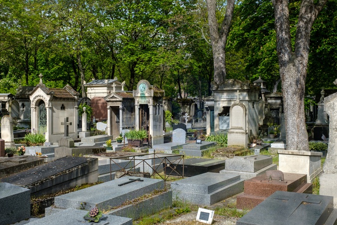 Cimetiere de Montmartre. Montmarte cemetery.The main graveyard for the distict lie beneath a busy road. Containg many old and impressive tombs, including those of Berlioz, Offenbach,Stendhal, Dumas and Russian dancer Nijinsky.Paris. France. EU. 25 April 2024., Credit:Mark Fairhurst / Avalon