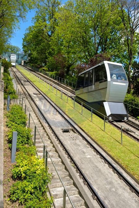 Funiculaire Gare Basse leading towards Sacre Coeur.Funicular railwayParis. France. EU. 25 April 2024., Credit:Mark Fairhurst / Avalon