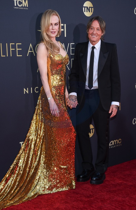 Nicole Kidman and Keith Urban arriving to AFI Life Achievement Award Gala Tribute to Nicole Kidman at Dolby Theatre on April 27, 2024 in Hollywood