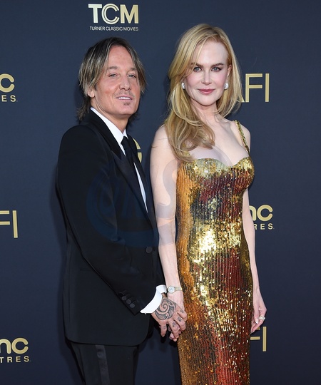 Keith Urban and Nicole Kidman arriving to AFI Life Achievement Award Gala Tribute to Nicole Kidman at Dolby Theatre on April 27, 2024 in Hollywood