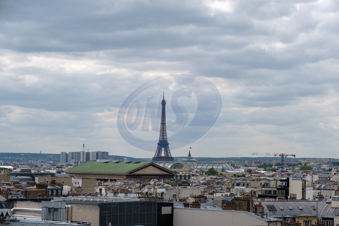 Eiffel tower and skyline of Paris during the day from Galeries Lafayette viewing gallery.Paris. France. EU. 25 April 2024., Credit:Mark Fairhurst / Avalon