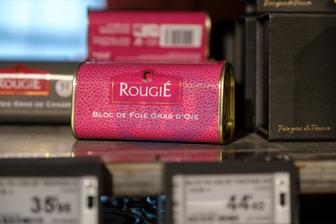 Foie Gras on sale in Galeries Lafayette shopping centre.Paris. France. EU. 25 April 2024., Credit:Mark Fairhurst / Avalon