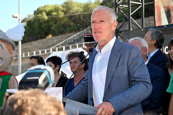 Didier Deschamps assiste au lancement de la grande campagne de communication du département des Alpes-Maritimes "20 Minutes Chrono pour Sauver une Vie"sur le terrain de sport du Fort Carré à Antibes