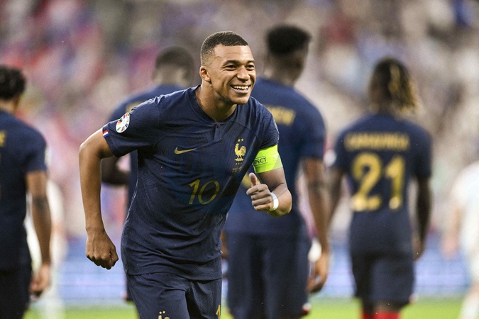 Info - Le PSG, champion de France pour la 12ème fois de son histoire - Info du 15 février 2024 - Kylian Mbappé a annoncé au PSG son départ cet été - joie des joueurs de l equipe de France apres le but de MBAPPE Kylian (FRA) sur penalty - Match de qualifications de l'Euro2024 "France - Grèce (1-0)" au stade de France, le 19 juin 2023. Euro2024 qualifying match "France - Greece (1-0)" at the Stade de France, June 19, 2023.