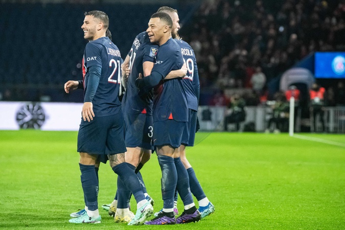 Info - Le PSG, champion de France pour la 12ème fois de son histoire - Joie des joueurs du Paris SG aprés le but de Kylian Mbappe (Paris SG) - Trophée des Champions entre le PSG et Toulouse (2-0) au Parc des Princes à Paris le 3 janvier 2024. Champions Trophy between PSG and Toulouse (2-0) at the Parc des Princes in Paris on January 3, 2024.