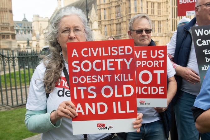 Debata na temat prawa dotyczącego wspomaganego umierania w Wielkiej Brytanii przed parlamentem gromadzi zwolennikow i przeciwnikow.