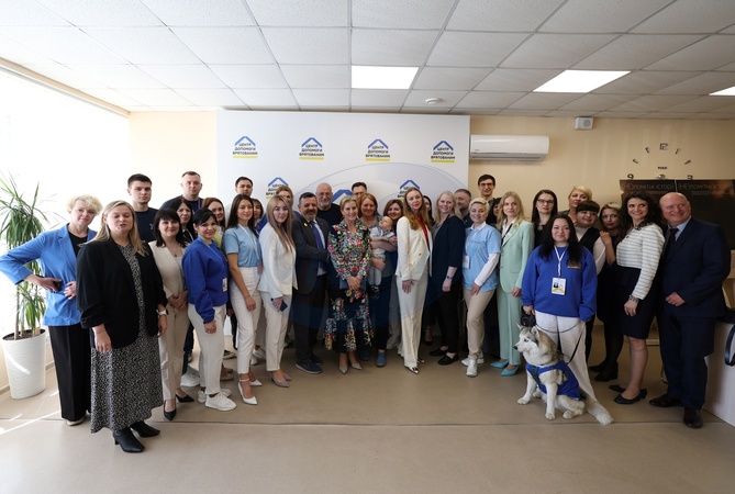 Britain's Sophie, Duchess of Edinburgh, (C) poses for a family picture as she visits the UNFPA office in Kyiv to meet with war victims on April 29, 2024. The visit, to demonstrate solidarity with the women, men and children impacted by the war, is a continuation of her work to champion survivors of conflict related sexual violence., Credit:ANATOLII STEPANOV / Avalon