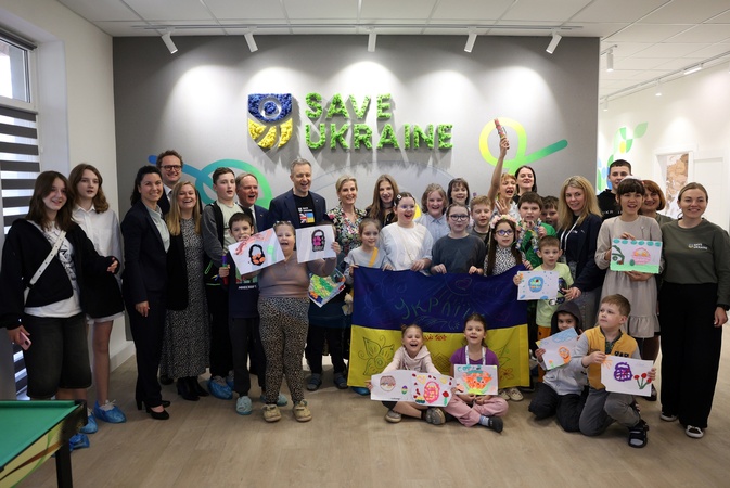 Britain's Sophie, Duchess of Edinburgh, poses for a family picture as she visits the Family center of the NGO "Save Ukraine" in the town of Irpin on April 29, 2024 amid the Russian invasion of Ukraine. The visit, to demonstrate solidarity with the women, men and children impacted by the war, is a continuation of her work to champion survivors of conflict related sexual violence., Credit:ANATOLII STEPANOV / Avalon