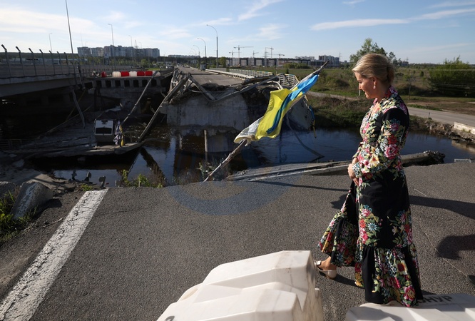Britain's Sophie, Duchess of Edinburgh, visits the Romanivska Bridge in the town of Irpin on April 29, 2024 amid the Russian invasion of Ukraine. The visit, to demonstrate solidarity with the women, men and children impacted by the war, is a continuation of her work to champion survivors of conflict related sexual violence., Credit:ANATOLII STEPANOV / Avalon