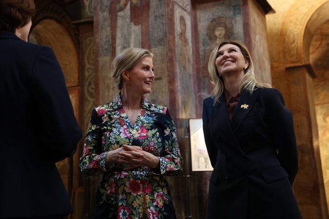 Britain's Sophie, Duchess of Edinburgh, (L) with the First Lady of Ukraine Olena Zelenska (R) visit the Saint Sophia Cathedral in Kyiv on April 29, 2024 amid the Russian invasion of Ukraine. The visit, to demonstrate solidarity with the women, men and children impacted by the war, is a continuation of her work to champion survivors of conflict related sexual violence., Credit:ANATOLII STEPANOV / Avalon