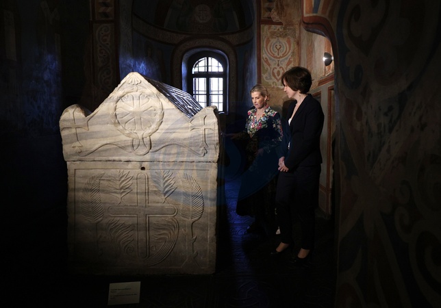 Britain's Sophie, Duchess of Edinburgh, visits the Saint Sophia Cathedral in Kyiv on April 29, 2024 amid the Russian invasion of Ukraine. The visit, to demonstrate solidarity with the women, men and children impacted by the war, is a continuation of her work to champion survivors of conflict related sexual violence., Credit:ANATOLII STEPANOV / Avalon