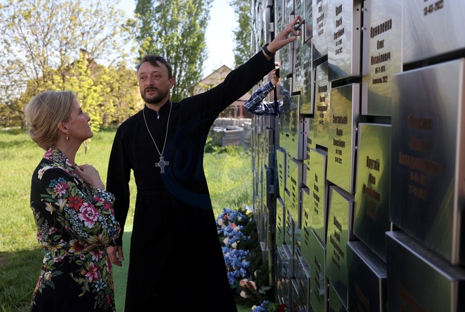 Britain's Sophie, Duchess of Edinburgh, visits a photo exhibition dedicated to the sacrifices of the Russian occupation of the town of Bucha in Saint Andrew's Church in Bucha on April 29, 2024, amid the Russian invasion of Ukraine. The visit, to demonstrate solidarity with the women, men and children impacted by the war, is a continuation of her work to champion survivors of conflict related sexual violence., Credit:ANATOLII STEPANOV / Avalon
