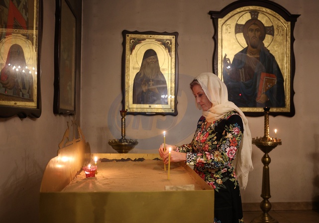 Britain's Sophie, Duchess of Edinburgh, lights a candle as she visits Saint Andrew's Church in the town of Bucha on April 29, 2024, amid the Russian invasion of Ukraine. The visit, to demonstrate solidarity with the women, men and children impacted by the war, is a continuation of her work to champion survivors of conflict related sexual violence., Credit:ANATOLII STEPANOV / Avalon