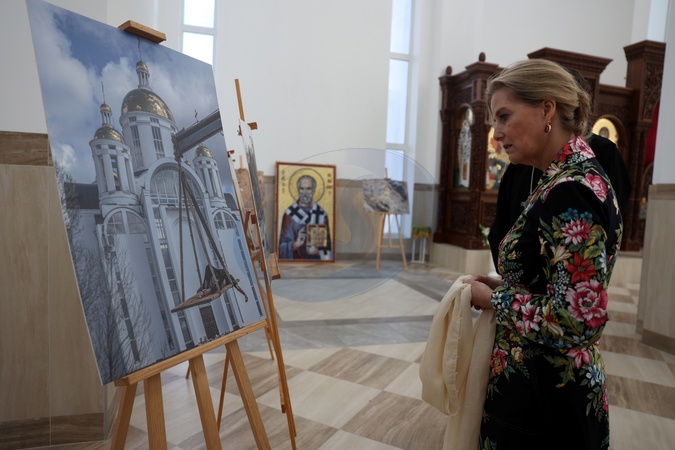 Britain's Sophie, Duchess of Edinburgh, visits a photo exhibition dedicated to the sacrifices of the Russian occupation of the town of Bucha in Saint Andrew's Church in Bucha on April 29, 2024, amid the Russian invasion of Ukraine. The visit, to demonstrate solidarity with the women, men and children impacted by the war, is a continuation of her work to champion survivors of conflict related sexual violence., Credit:ANATOLII STEPANOV / Avalon
