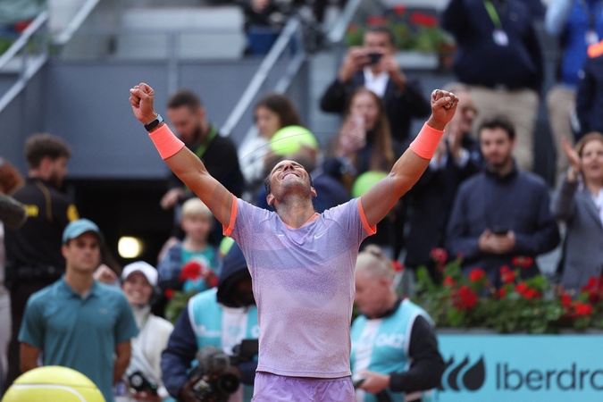 Rafael Nadal Zwycięzca Pedro Cachina w 1/8 finału turnieju tenisowego Mutua na oczach żony i syna w Madrycie