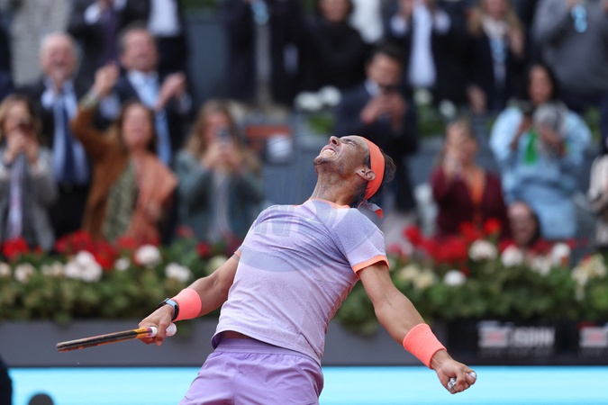 Rafael Nadal Zwycięzca Pedro Cachina w 1/8 finału turnieju tenisowego Mutua na oczach żony i syna w Madrycie