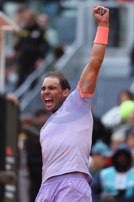 Rafael Nadal - Rafael Nadal Vainqueur de Pedro Cachin en seizièmes de finale du tournoi de tennis Mutua sous les yeux de sa femme et son fils à Madrid le 29 avril 2024. Rafael Nadal Winner of Pedro Cachin in the round of 16 of the Mutua tennis tournament under the eyes of his wife and son in Madrid on April 29, 2024.