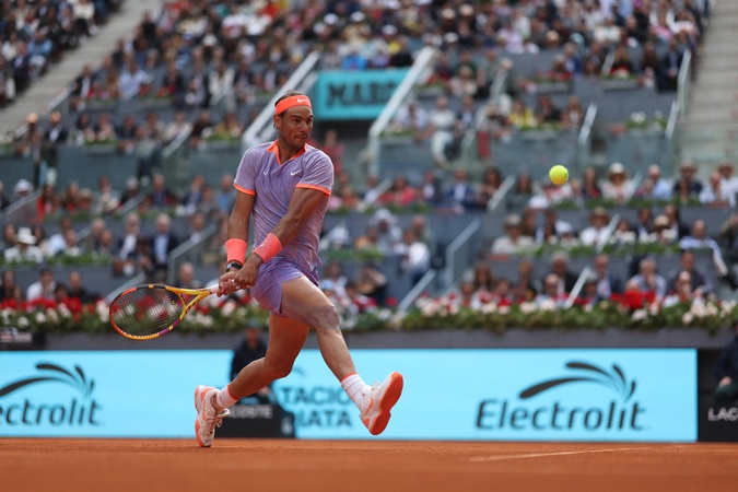 Rafael Nadal Zwycięzca Pedro Cachina w 1/8 finału turnieju tenisowego Mutua na oczach żony i syna w Madrycie