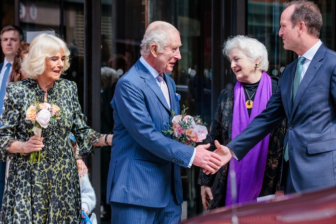 University College Hospital, London, UK. 30th April 2023.His Majesty, King Charles III, Patron of Cancer Research UK and Macmillan Cancer Support, and Queen Camilla visit University College Hospital Macmillan Cancer Centre, marking The King's first day as the new Patron of Cancer Research UK and his first public engagement since announcing his Cancer diagnosis. This visit will raise awareness of the importance of early diagnosis and highlight some of the innovative research, supported by Cancer Research UK, which is taking place at the hospital., Credit:Photo by Amanda Rose / Avalon