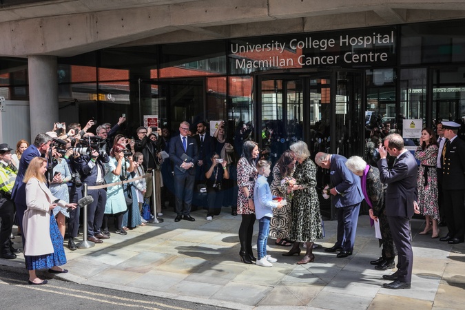 King Charles returns to public duty with Queen Camilla on visit to UCH Macmillan Cancer Centre, London, UK
