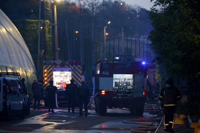 ODESA, UKRAINE - APRIL 29, 2024 - Firefighters put out the fire at the Palace of Students of the Odesa Law Academy caused by a Russian missile attack in Odesa, southern Ukraine, which has killed five people. Preliminary reports indicate that the Russian army used a ballistic missile with cluster munition to strike the southern Ukrainian port city., Credit:Nina Liashonok / Avalon