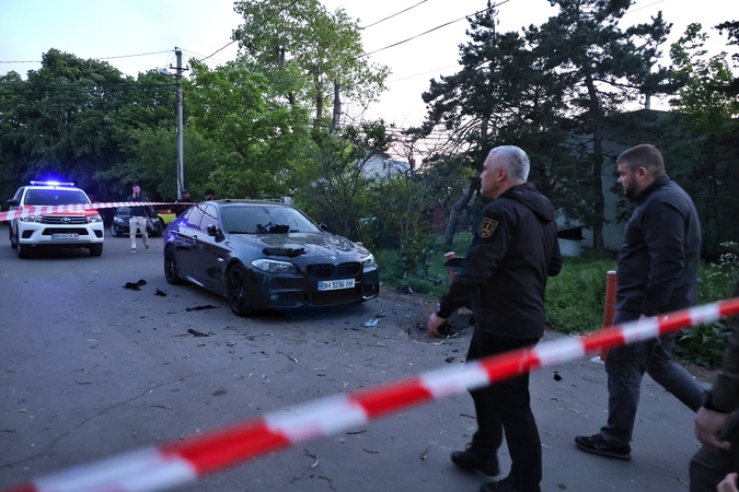 ODESA, UKRAINE - APRIL 29, 2024 - Head of the Odesa Regional Military Administration Oleh Kiper (L) is pictured during a response effort to a Russian missile attack in Odesa, southern Ukraine, which has killed five people. Preliminary reports indicate that the Russian army used a ballistic missile with cluster munition to strike the southern Ukrainian port city., Credit:Nina Liashonok / Avalon