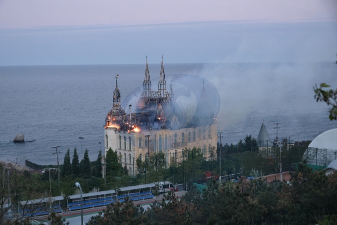 ODESA, UKRAINE - APRIL 29, 2024 - The Palace of Students of the Odesa Law Academy is on fire due to a Russian missile attack in Odesa, southern Ukraine, which has killed five people. Preliminary reports indicate that the Russian army used a ballistic missile with cluster munition to strike the southern Ukrainian port city., Credit:Nina Liashonok / Avalon