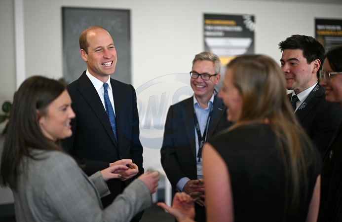 Britain's Prince William, Prince of Wales (2L) reacts during his visit to visit Low Carbon Materials in Seaham, north east England on April 30, 2024, to learn more about how they are working to create low-carbon construction material alternatives since becoming a 2022 Earthshot Prize Finalist., Credit:OLI SCARFF / Avalon