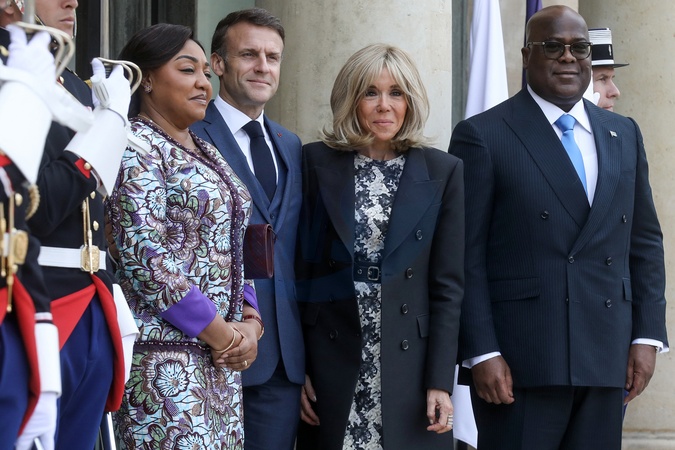 Prezydent Emmanuel Macron i Pierwsza Dama Brigitte Macron przyjmują pezydenta Demokratycznej Republiki Konga Félixa Tshisekediego i Premier Denise Nyakeru Tshisekedi, na lunchu roboczym w Pałacu Elizejskim