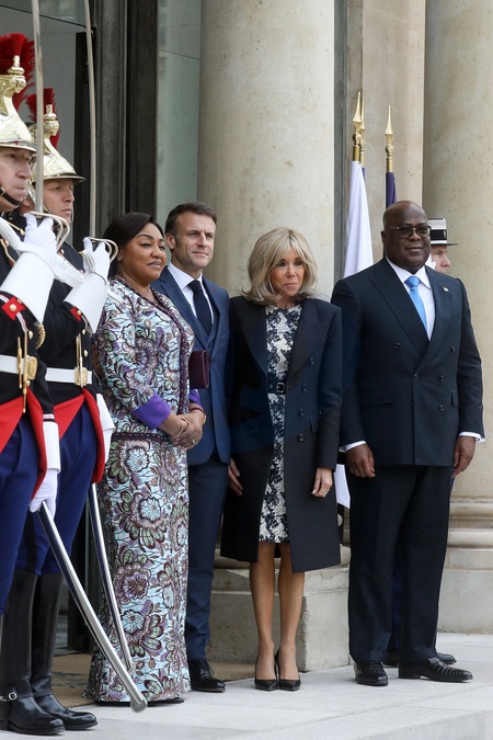 Prezydent Emmanuel Macron i Pierwsza Dama Brigitte Macron przyjmują pezydenta Demokratycznej Republiki Konga Félixa Tshisekediego i Premier Denise Nyakeru Tshisekedi, na lunchu roboczym w Pałacu Elizejskim