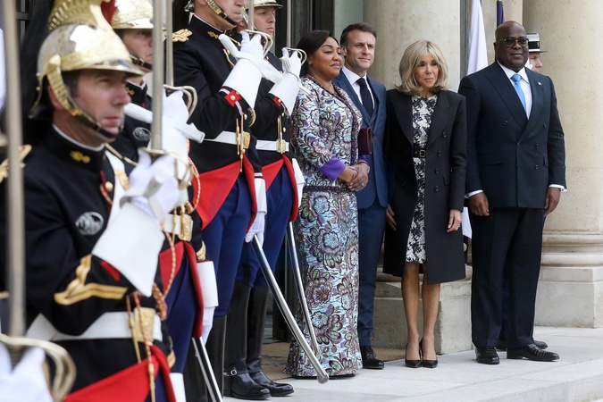 Prezydent Emmanuel Macron i Pierwsza Dama Brigitte Macron przyjmują pezydenta Demokratycznej Republiki Konga Félixa Tshisekediego i Premier Denise Nyakeru Tshisekedi, na lunchu roboczym w Pałacu Elizejskim