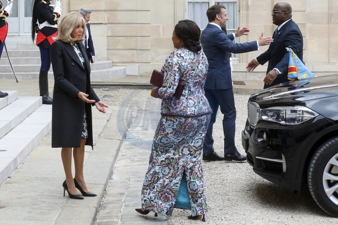 Prezydent Emmanuel Macron i Pierwsza Dama Brigitte Macron przyjmują pezydenta Demokratycznej Republiki Konga Félixa Tshisekediego i Premier Denise Nyakeru Tshisekedi, na lunchu roboczym w Pałacu Elizejskim