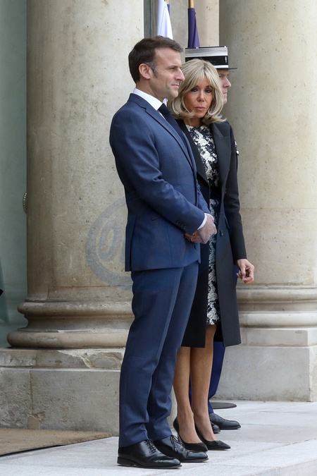 Prezydent Emmanuel Macron i Pierwsza Dama Brigitte Macron przyjmują pezydenta Demokratycznej Republiki Konga Félixa Tshisekediego i Premier Denise Nyakeru Tshisekedi, na lunchu roboczym w Pałacu Elizejskim